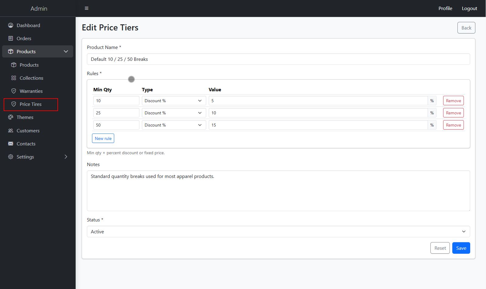 Apply Price Tiers